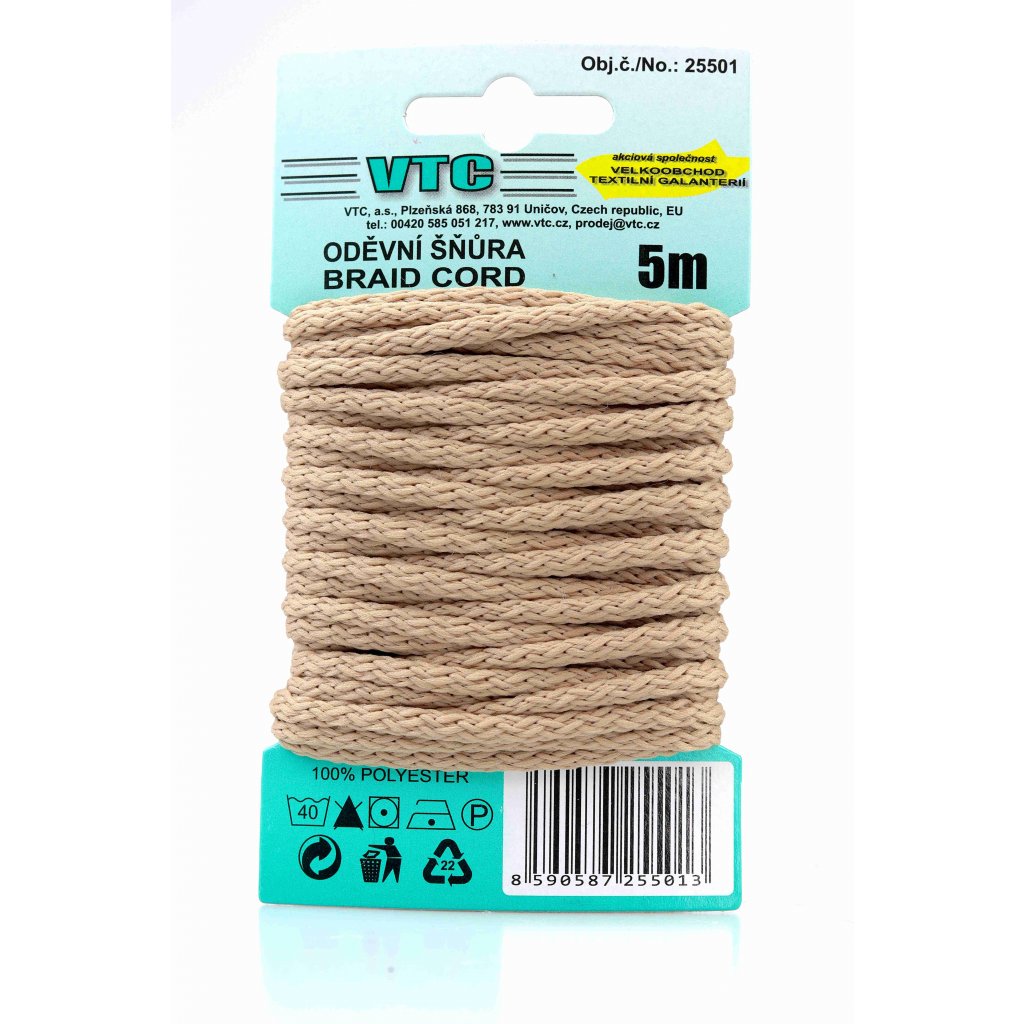 Oděvní šňůra 5 m na kartě - 43 hnědobéžová