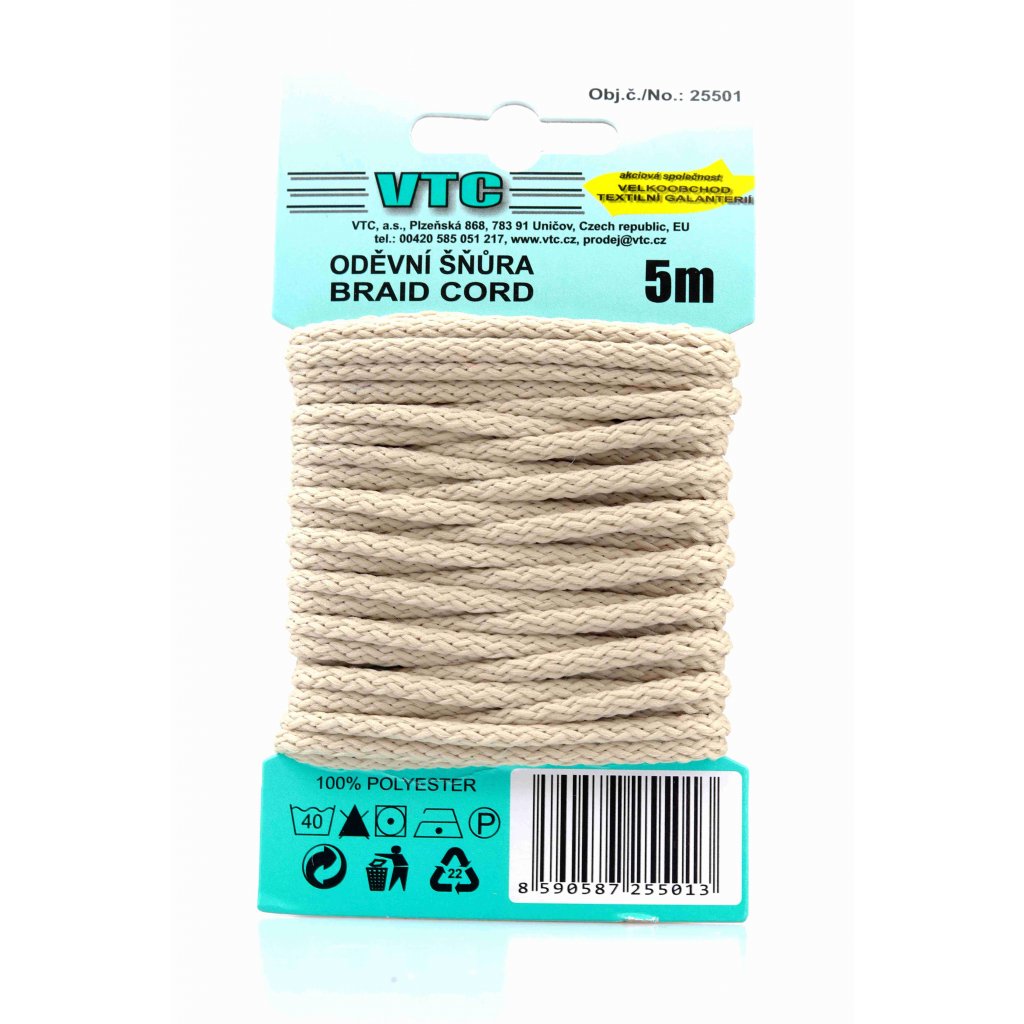 Oděvní šňůra 5 m na kartě - 44 světle okrová