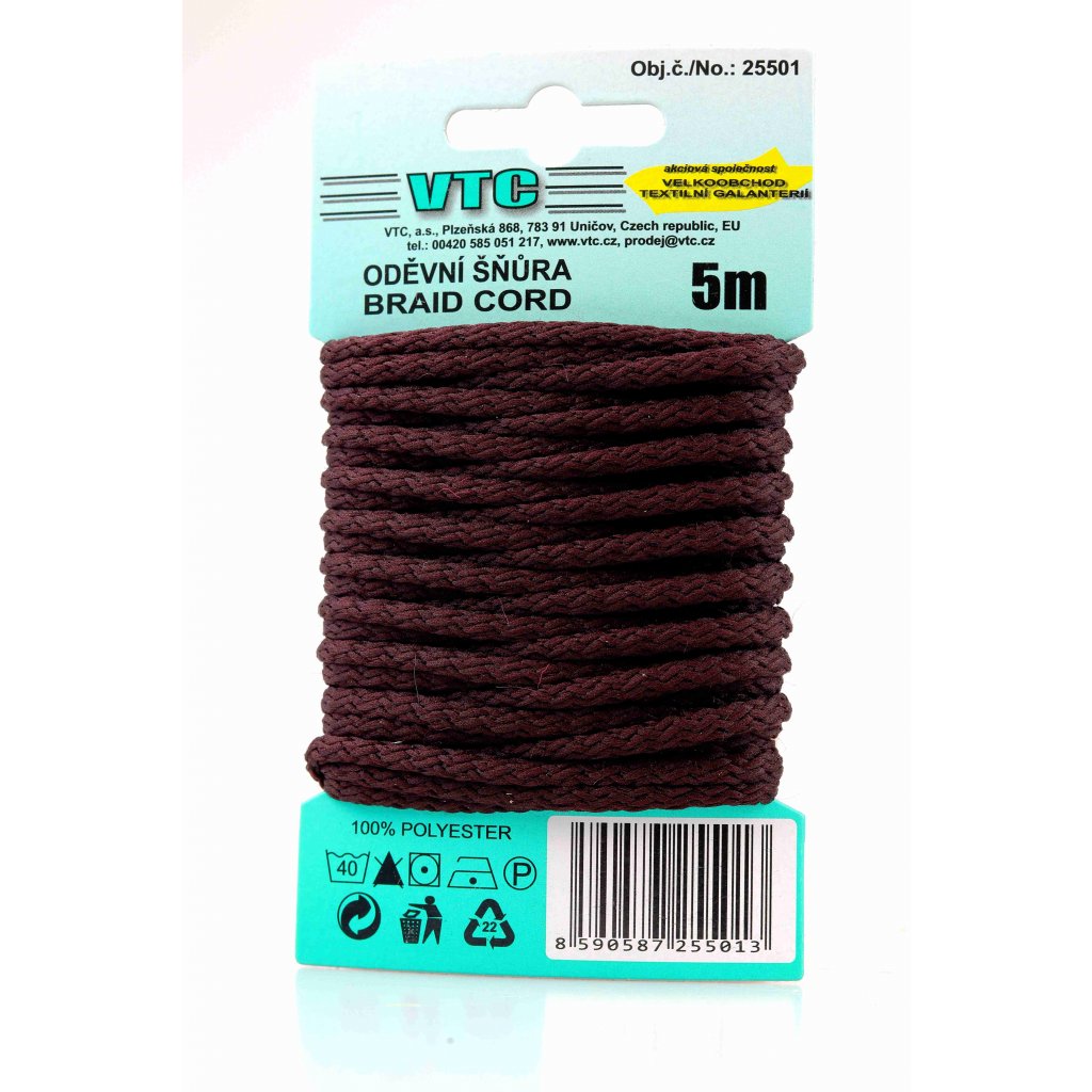 Oděvní šňůra 5 m na kartě - 48 tmavě hnědá