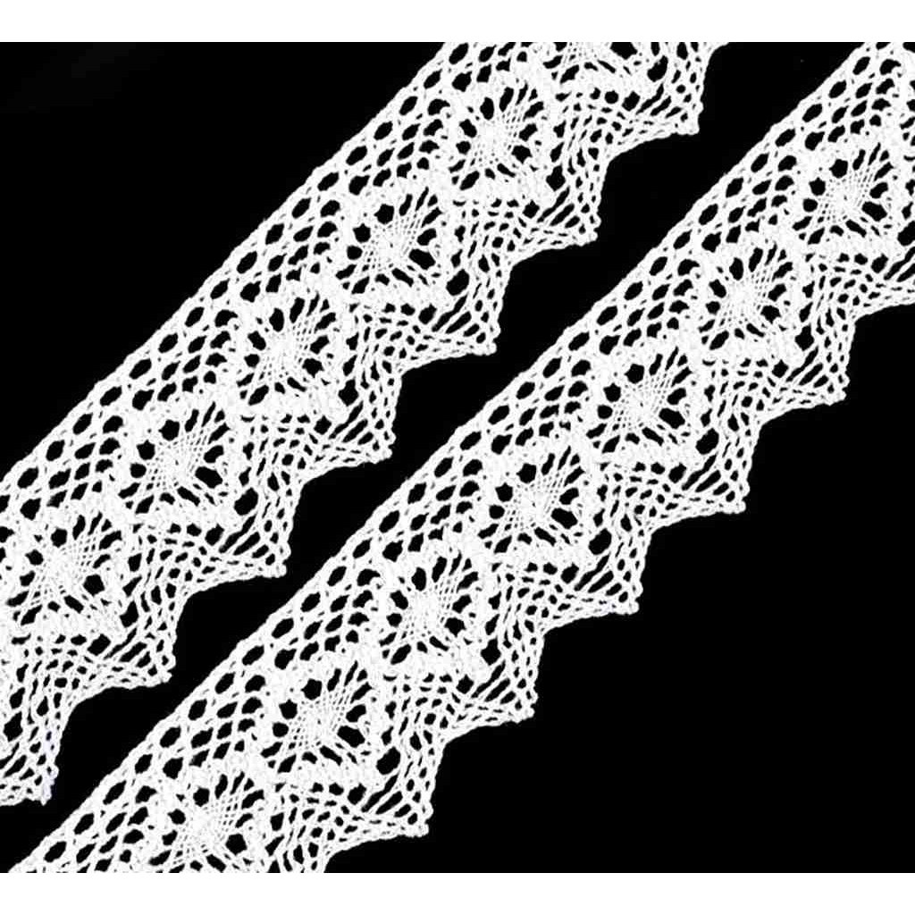 Paličkovaná krajka se zajímavým vzorem je vyrobená z bavlny.