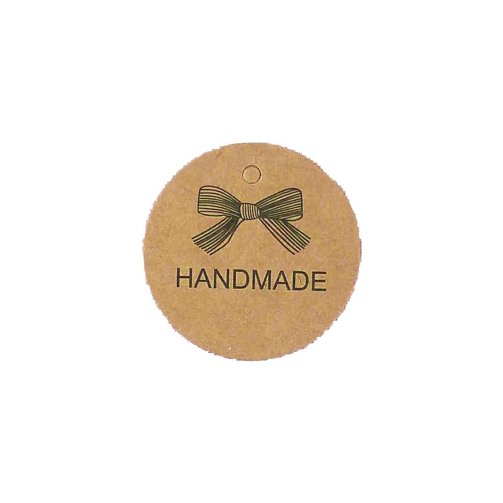 Látková cedulka Handmade. Bílá barva, červené srdíčko.