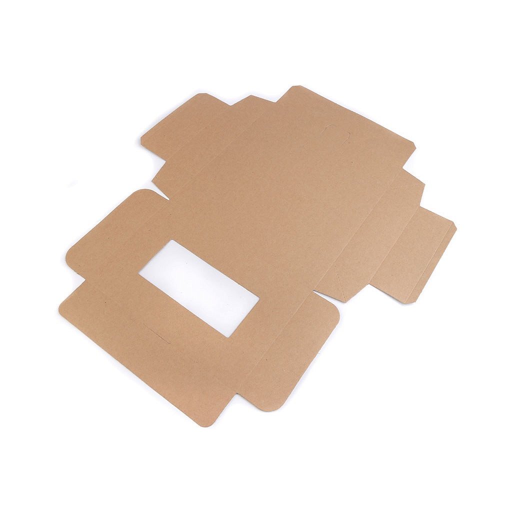 Papírová krabice s průhledem. Barva: hnědá přírodní. Velikost: 16 x 24 cm. Výška: 5 cm. Rozměr průhledu: 6,5 x 14,3 cm. Materiál: papír a plast.