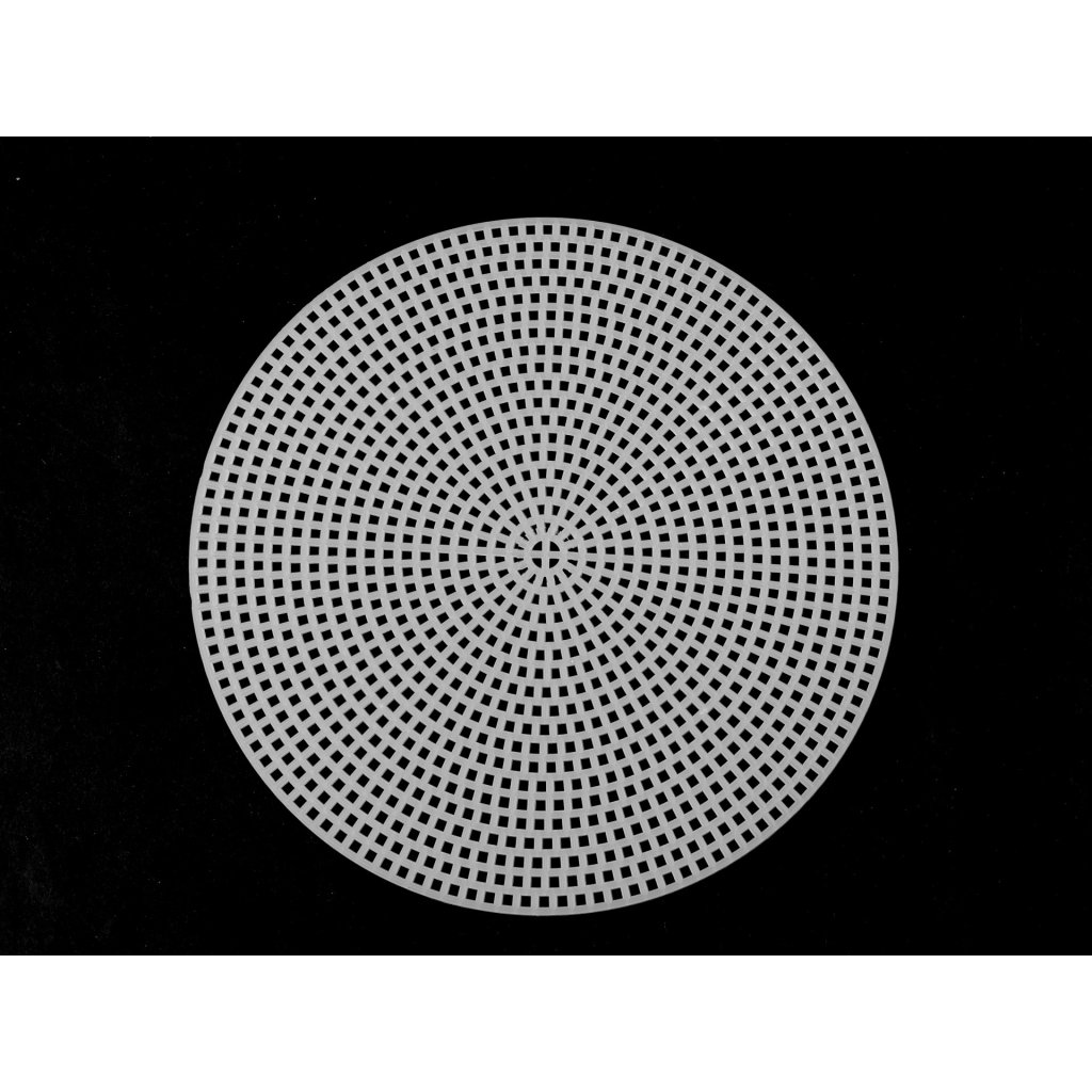 Malá plastová mřížka ve tvaru kruhu se používá na vyšívané dekorace.