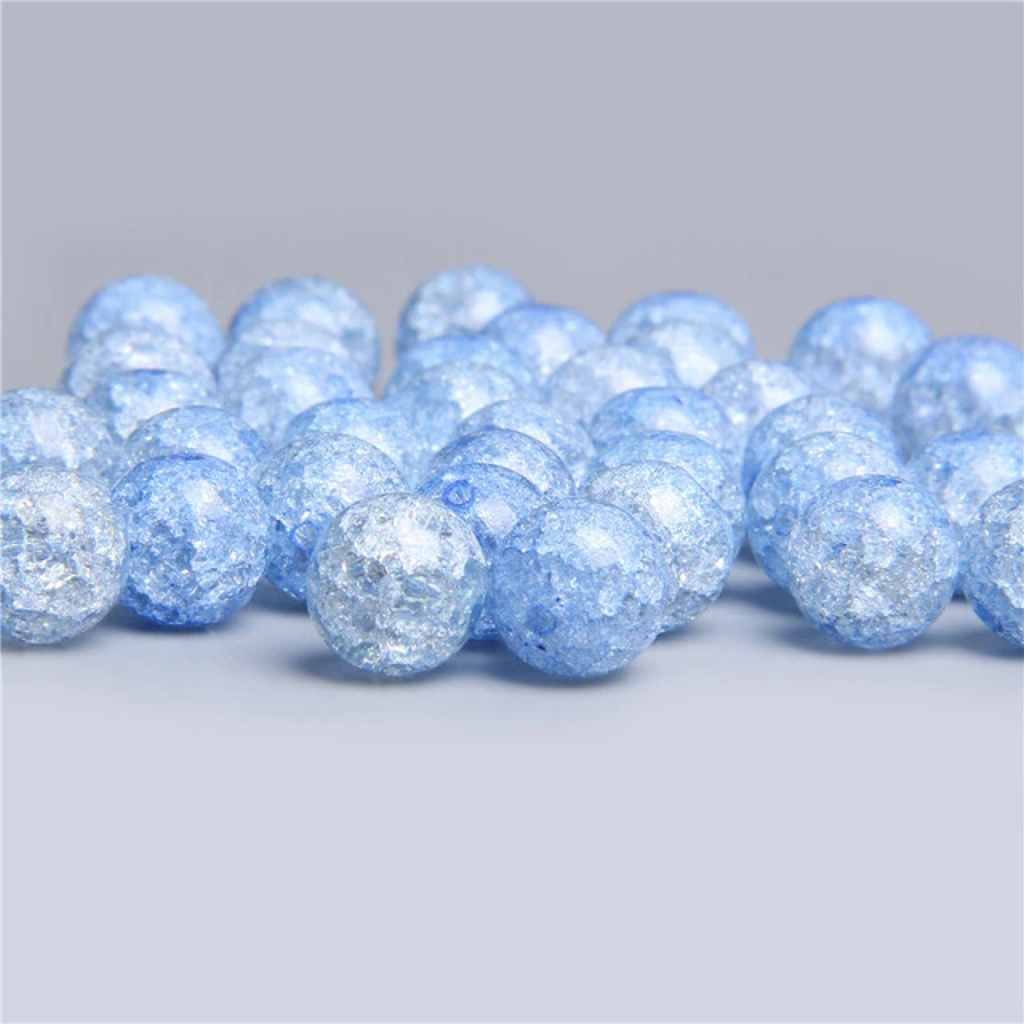 Praskané korálky jsou vyrobené ze skla. Mají zajímavý popraskaný efekt - drobné praskliny a bublinky uvnitř korálku. Strukturou připomínají praskaný křišťál. Praskliny a bublinky vznikají tak, že se rozpálený skleněný korálek rychle zchladí vodou. Korálky vypadají křehce, ale jsou pevné. Jsou krásně lesklé, stálobarevné.