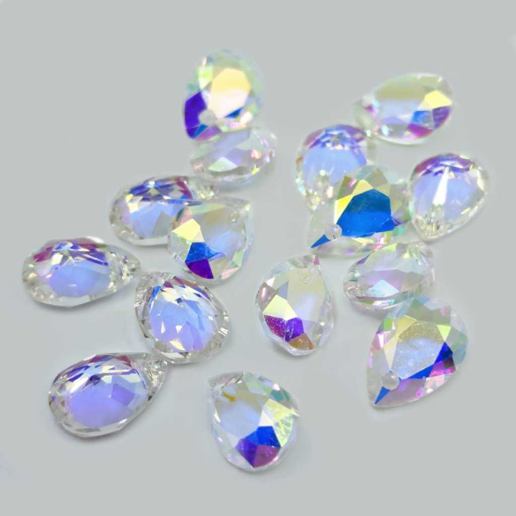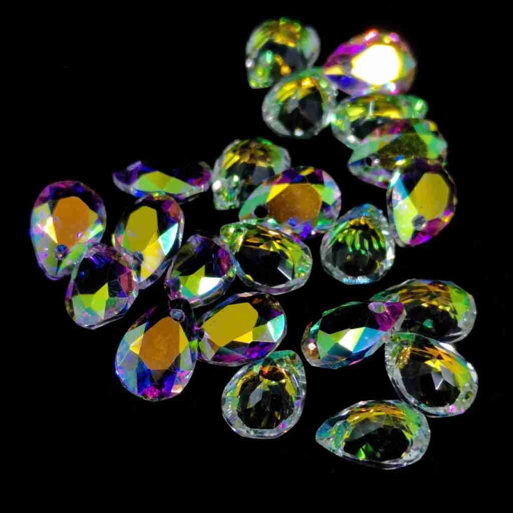 Přívěsek broušený kapka 9x6x4 mm průhledná, duhový AB.