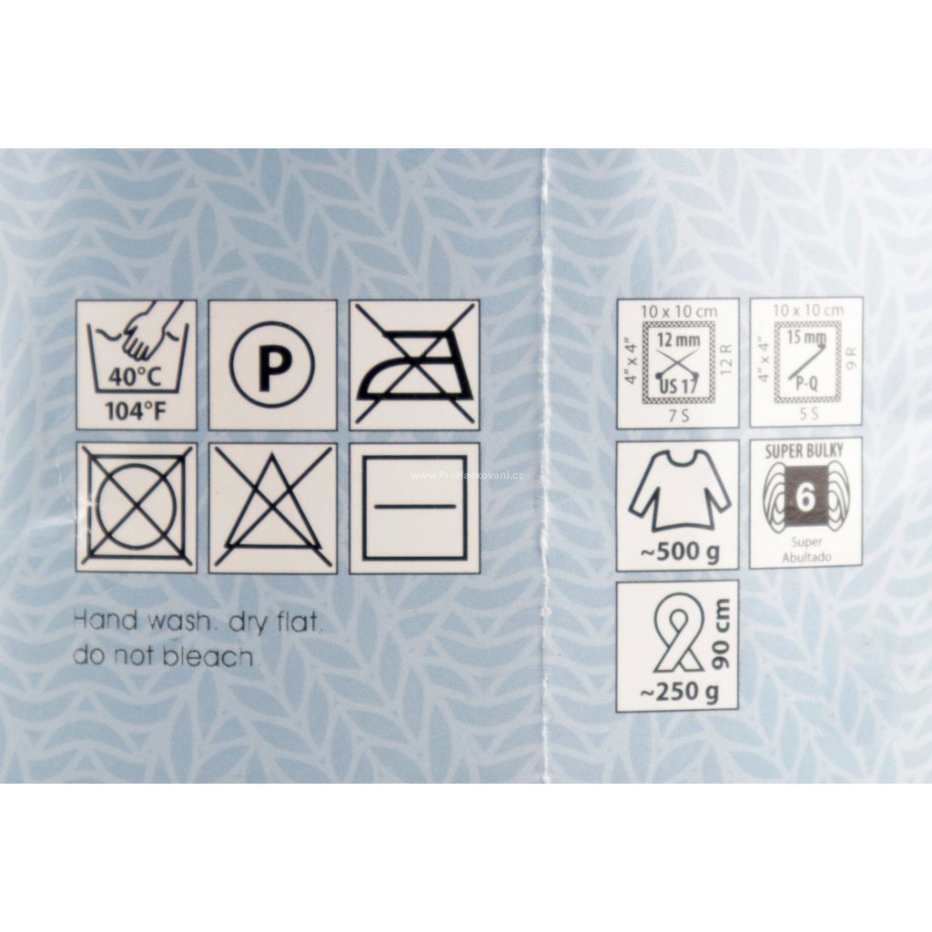 Velmi silná vlněná příze s větším podílem akrylu. Výborná pro pletení na rukou nebo silnějších jehlicích či háčku.