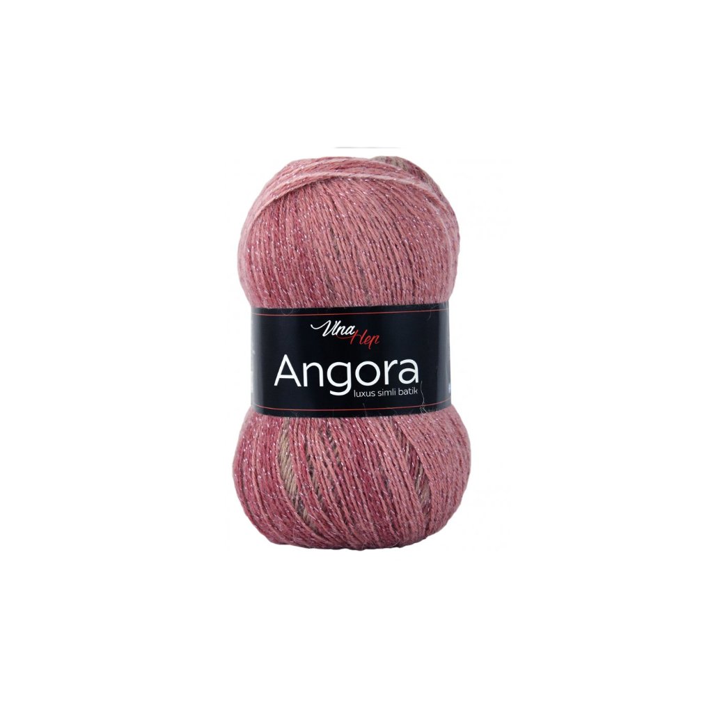 příze Angora Luxus Simli Batik 5722 starorůžová a hnědá