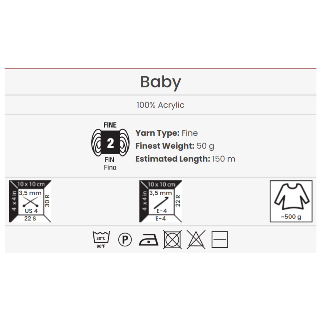 Babyis a pleasant acrylic yarn suitable for knitting for the little ones (certified by the Technical Inspectorate for children up to 3 years).