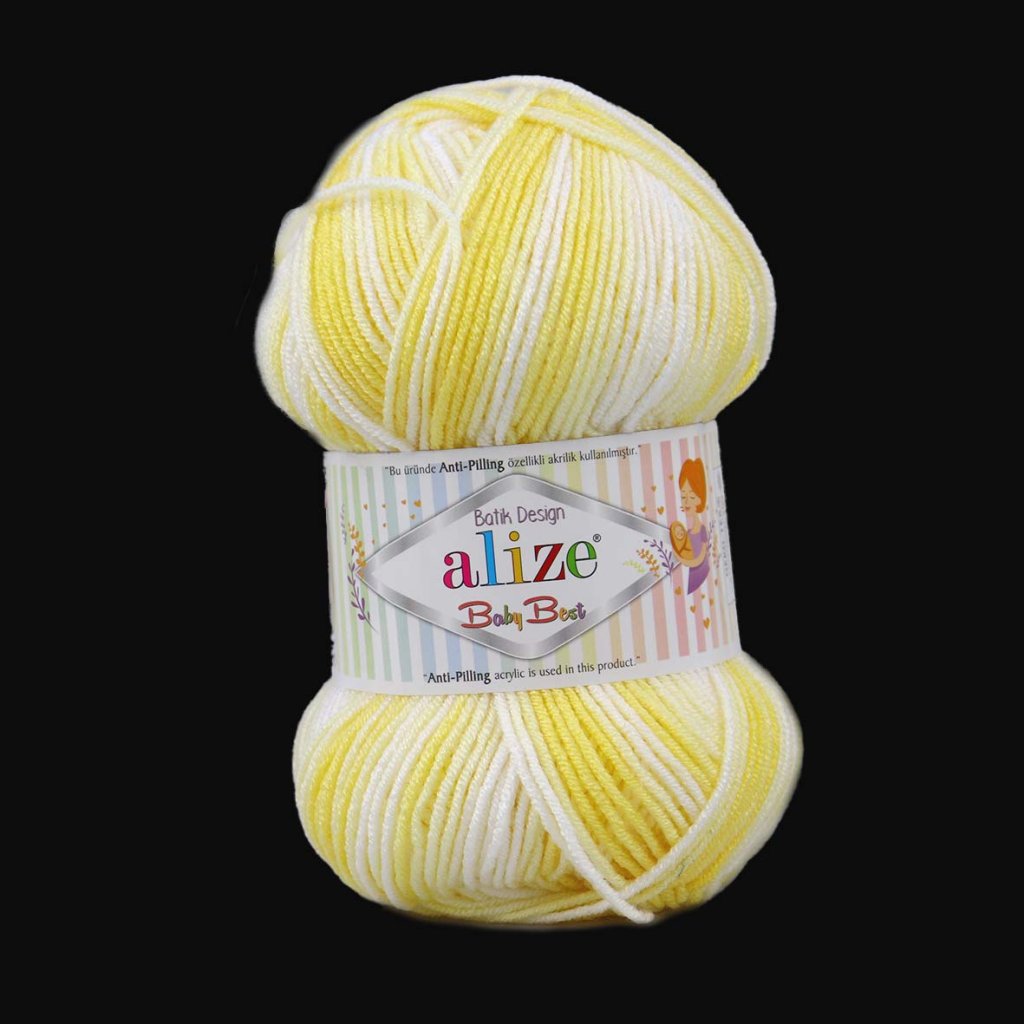 příze Baby Best Batik 6661 bílá a žlutá.