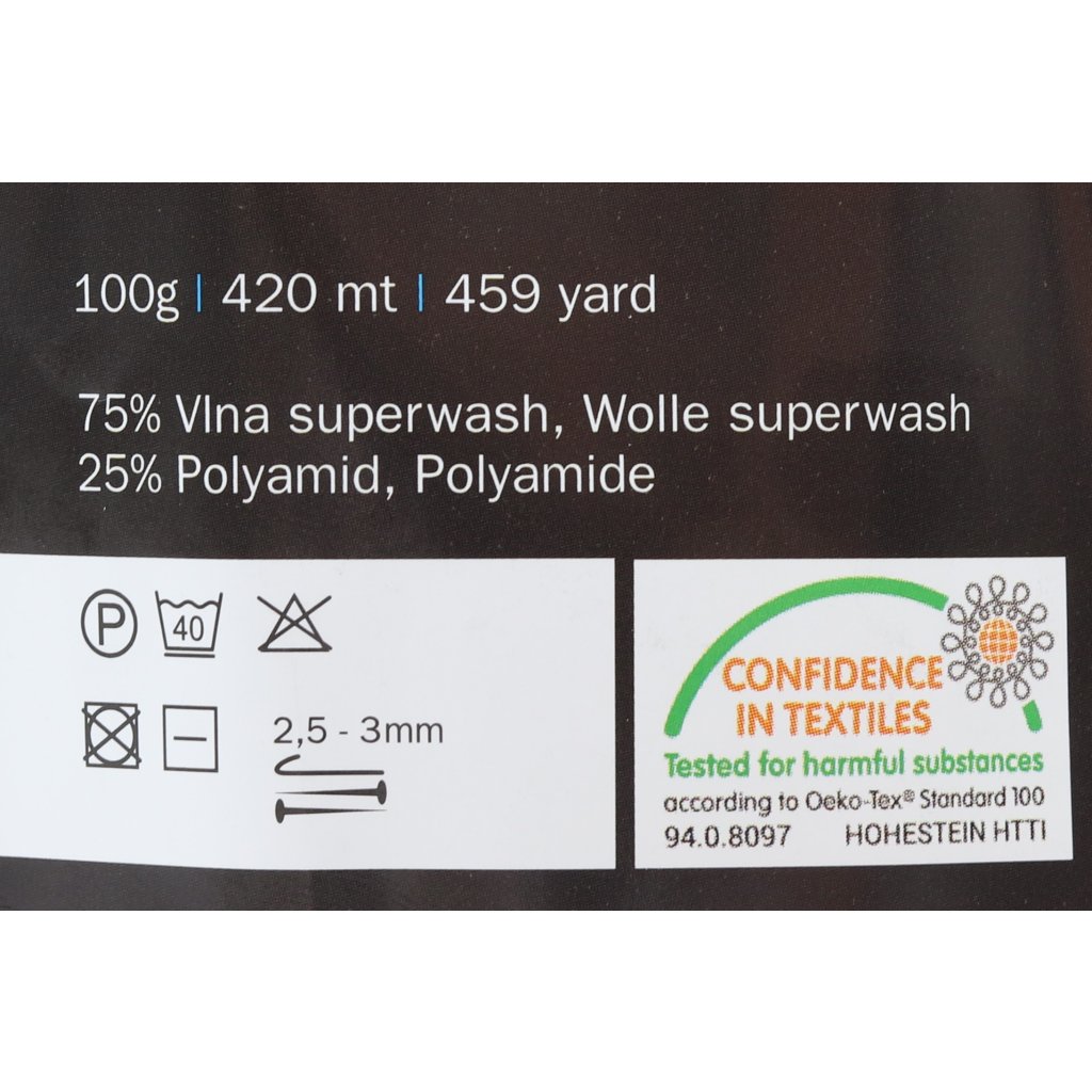 Složení: 75 % superwash vlna, 25 % polyamid.