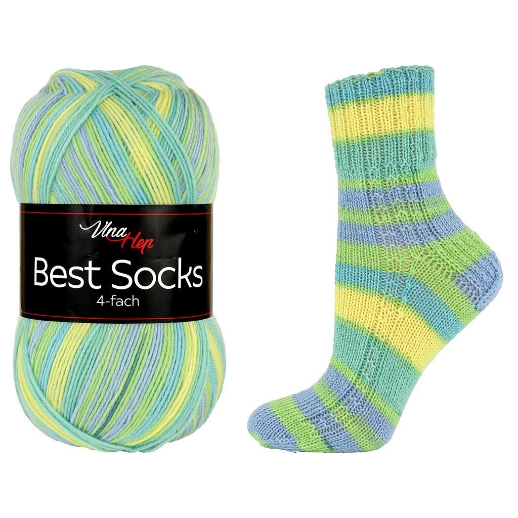 příze Best Socks 7356 nebesky modrá, jarní zelená, žlutá.