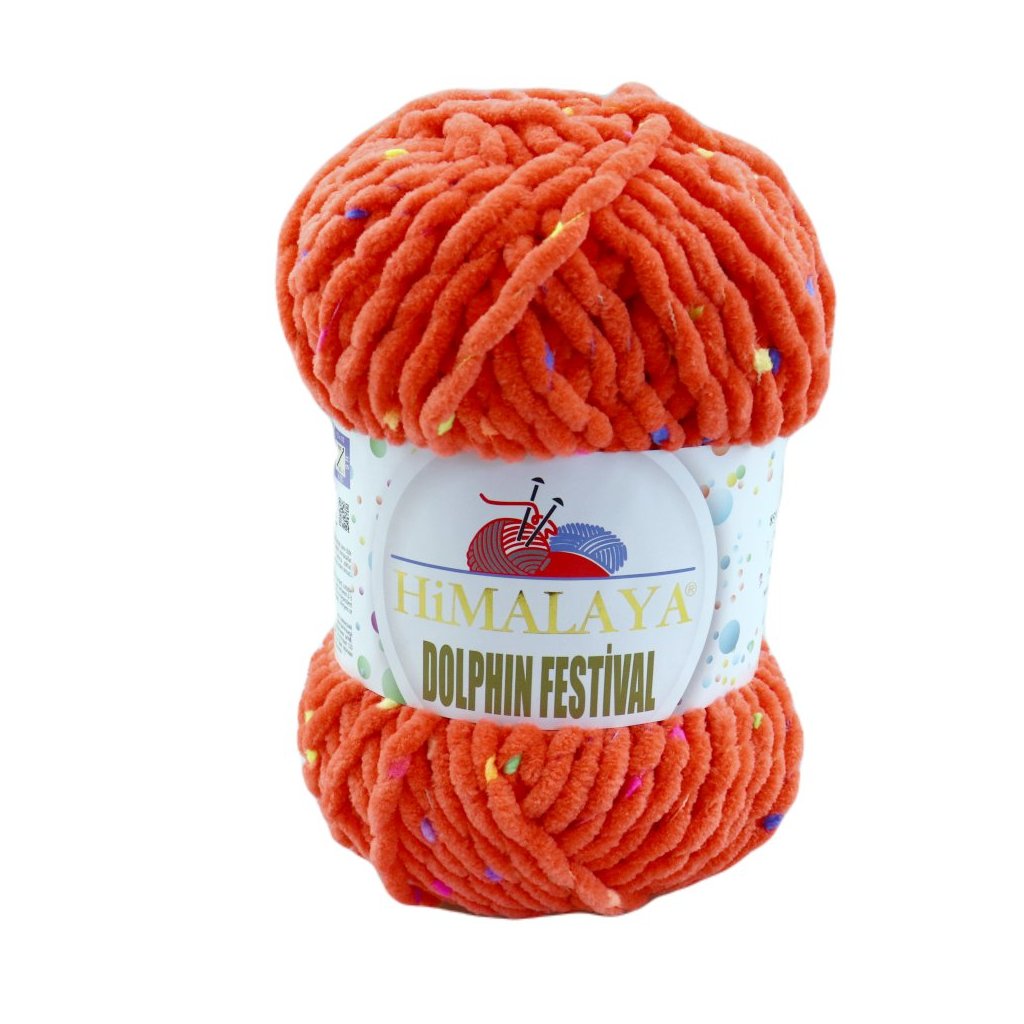 Himalaya Dolphin Festival je žinylková příze s barevným vláknem a nopky. Vlákno je obmotáno kolem příze.