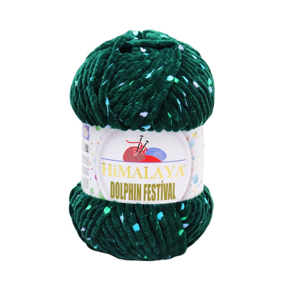 Himalaya Dolphin Festival je žinylková příze s barevným vláknem a nopky. Vlákno je obmotáno kolem příze.