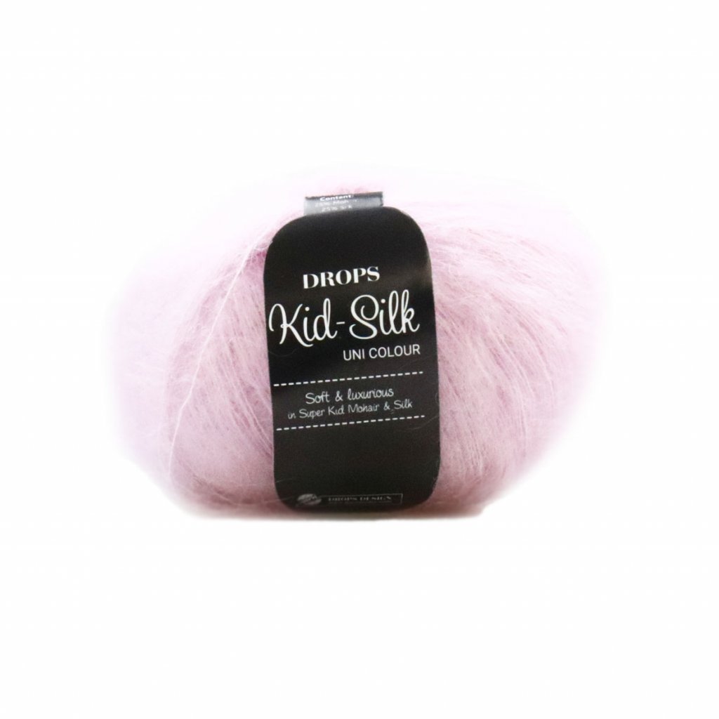 Příze Drops Kid-Silk je směsí 75 % kid mohéru a 25 % morušového hedvábí. Jedná se o luxusní, vzdušnou a velmi jemnou přízi s vlasem, kterou doporučujeme na lehké úplety jako jsou krajkové šály, plédy, pelerínky, bolerka či něžné svetříky i šaty. Používá se samostatně nebo se kombinuje s jinými přízemi.