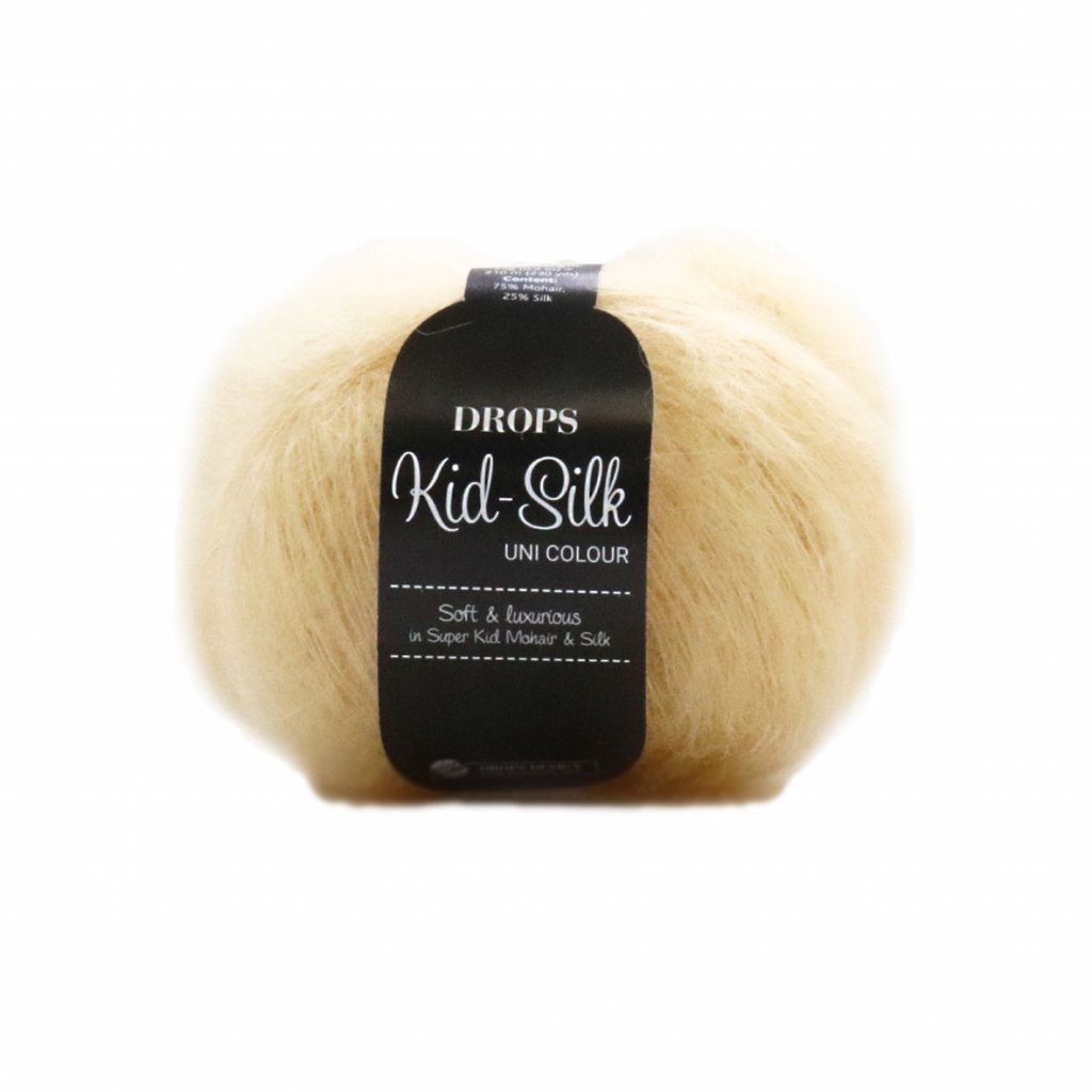 Příze Drops Kid-Silk je směsí 75 % kid mohéru a 25 % morušového hedvábí. Jedná se o luxusní, vzdušnou a velmi jemnou přízi s vlasem, kterou doporučujeme na lehké úplety jako jsou krajkové šály, plédy, pelerínky, bolerka či něžné svetříky i šaty. Používá se samostatně nebo se kombinuje s jinými přízemi.