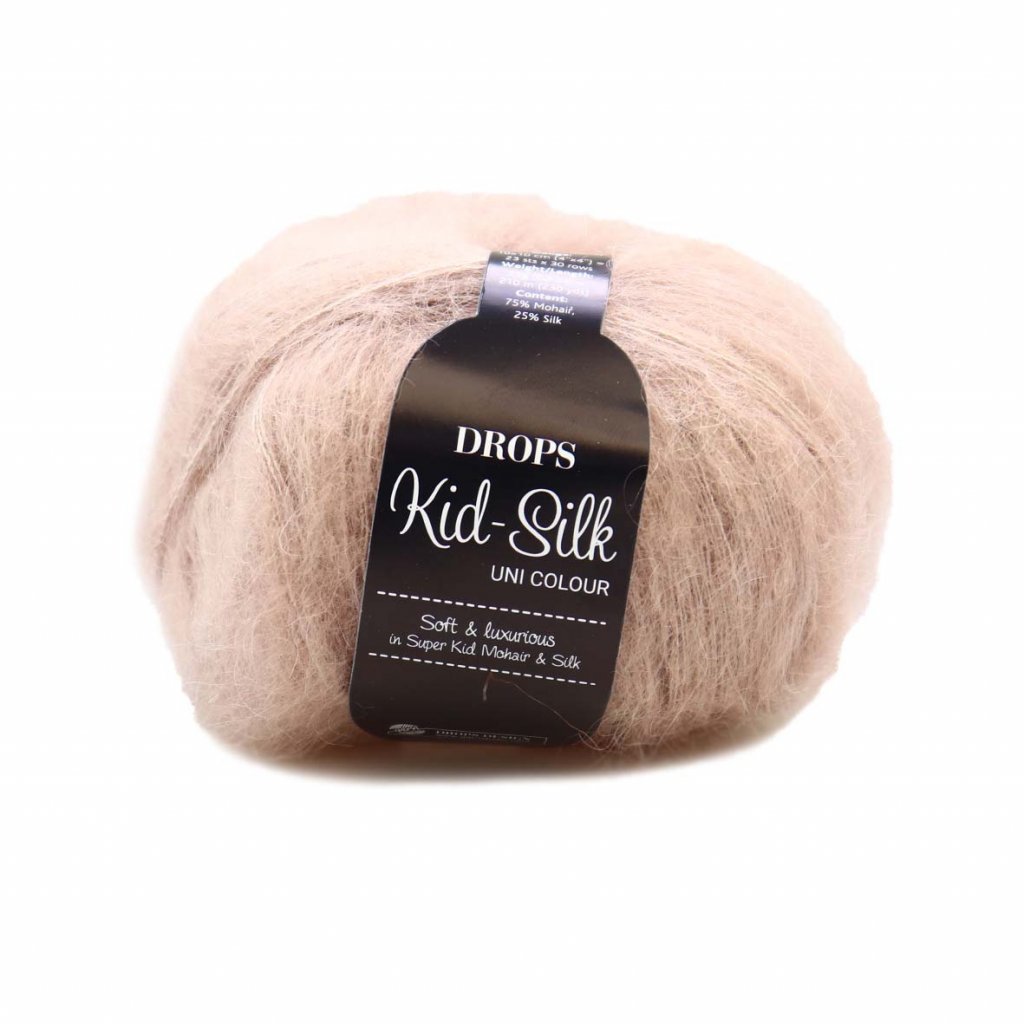 Příze Drops Kid-Silk je směsí 75 % kid mohéru a 25 % morušového hedvábí. Jedná se o luxusní, vzdušnou a velmi jemnou přízi s vlasem, kterou doporučujeme na lehké úplety jako jsou krajkové šály, plédy, pelerínky, bolerka či něžné svetříky i šaty. Používá se samostatně nebo se kombinuje s jinými přízemi.