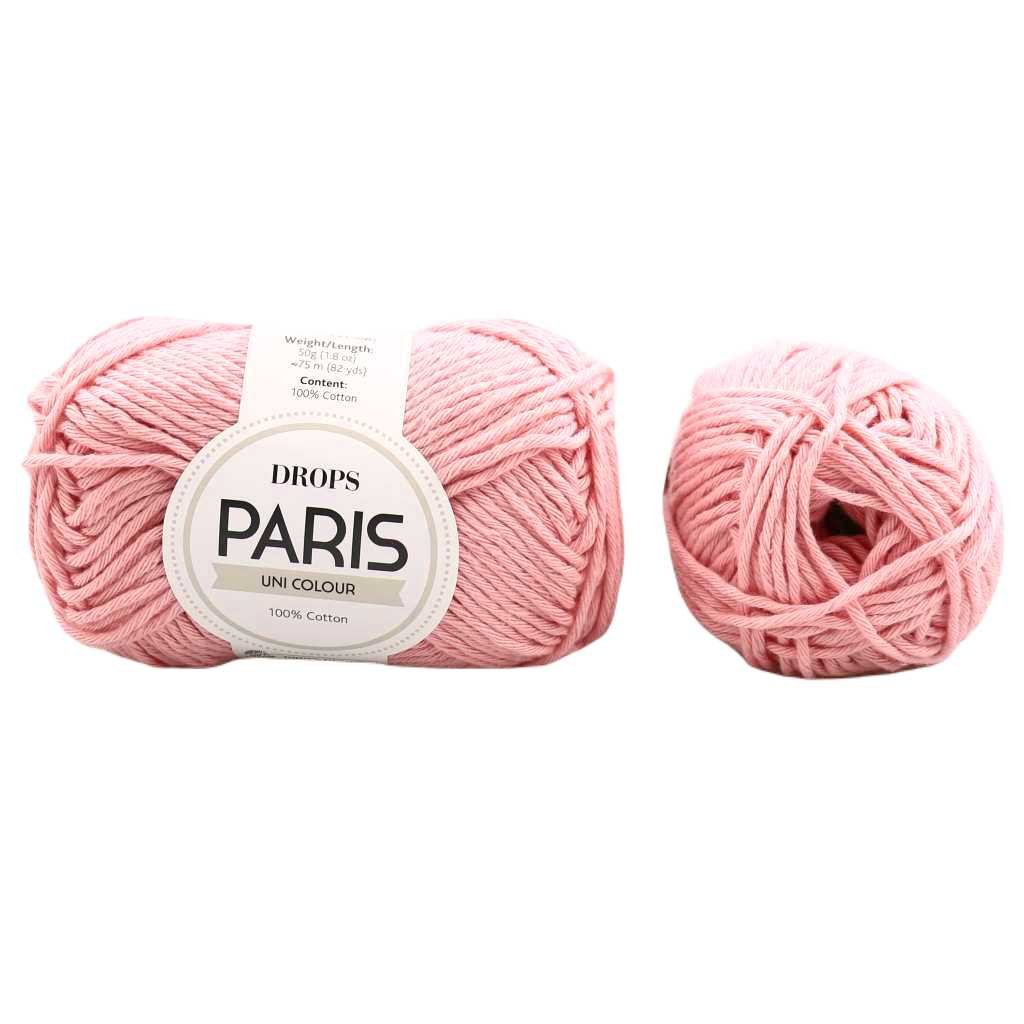 Příze DROPS Paris je tvořena velkým množství tenkých vláken 100% bavlny. Je měkká, nedráždivá, vhodná i pro osoby s citlivou pokožkou, dobře se z ní plete i háčkuje. Výsledný úplet má jemný rustikální nádech.