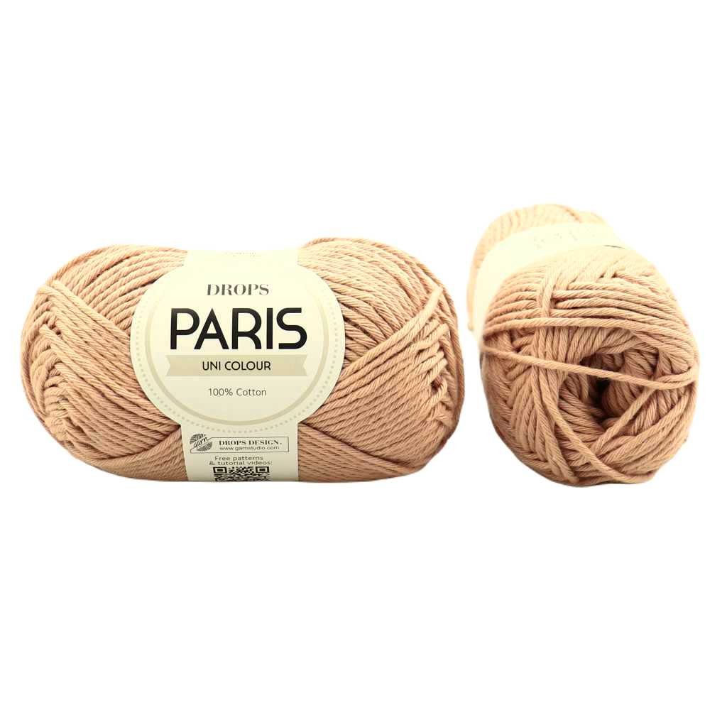 Příze DROPS Paris je tvořena velkým množství tenkých vláken 100% bavlny. Je měkká, nedráždivá, vhodná i pro osoby s citlivou pokožkou, dobře se z ní plete i háčkuje. Výsledný úplet má jemný rustikální nádech.