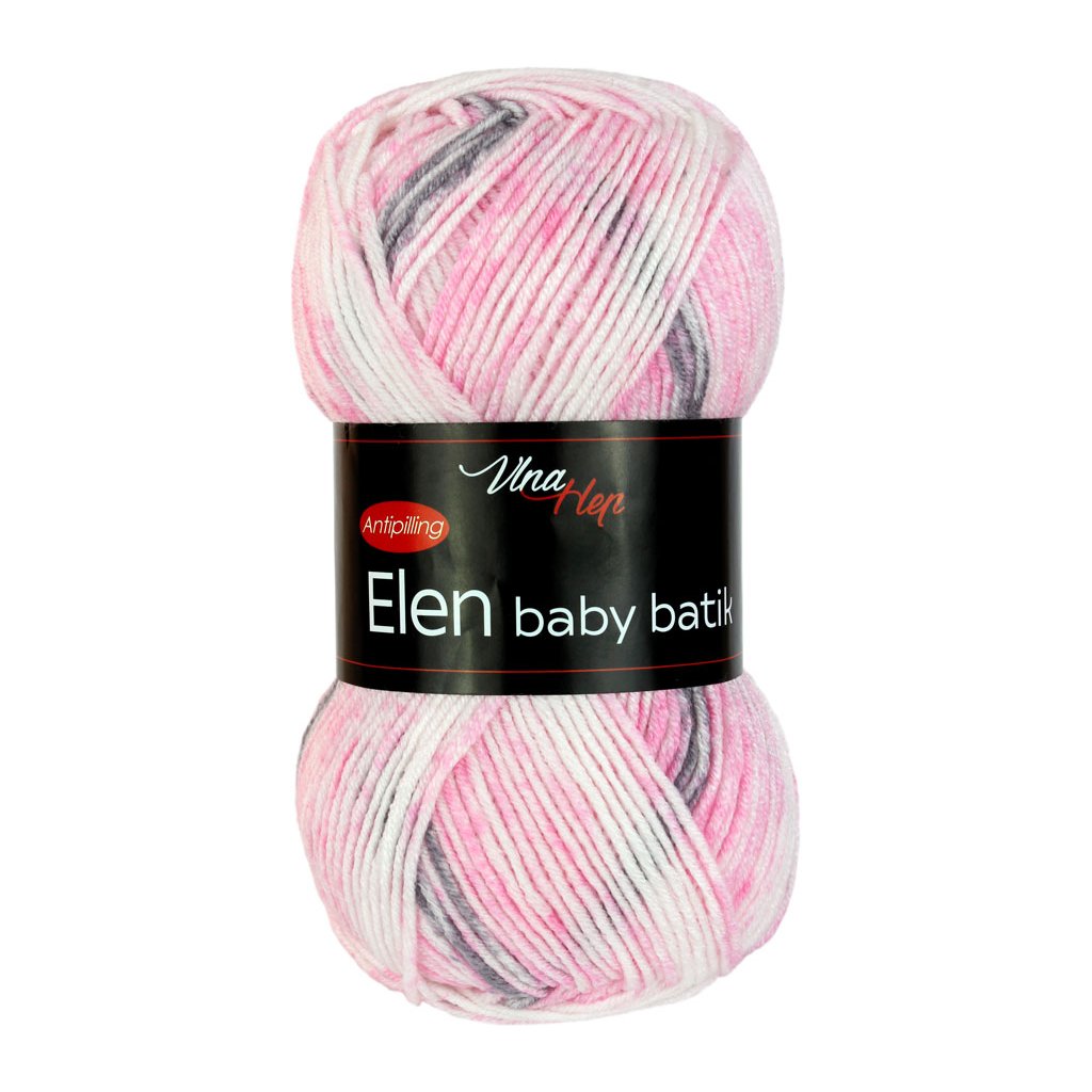 Stejně jako její jednobarevná sestra je i Elen baby batik velmi univerzální akrylová příze, kterou využijete na čepice, nákrčníky, rukavice, svetry, vesty, ponča, šaty, sukně.