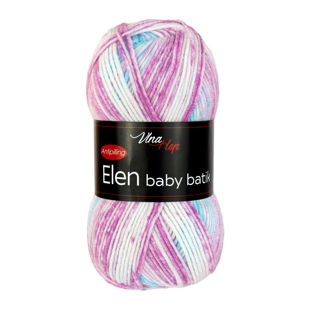 Stejně jako její jednobarevná sestra je i Elen baby batik velmi univerzální akrylová příze, kterou využijete na čepice, nákrčníky, rukavice, svetry, vesty, ponča, šaty, sukně.