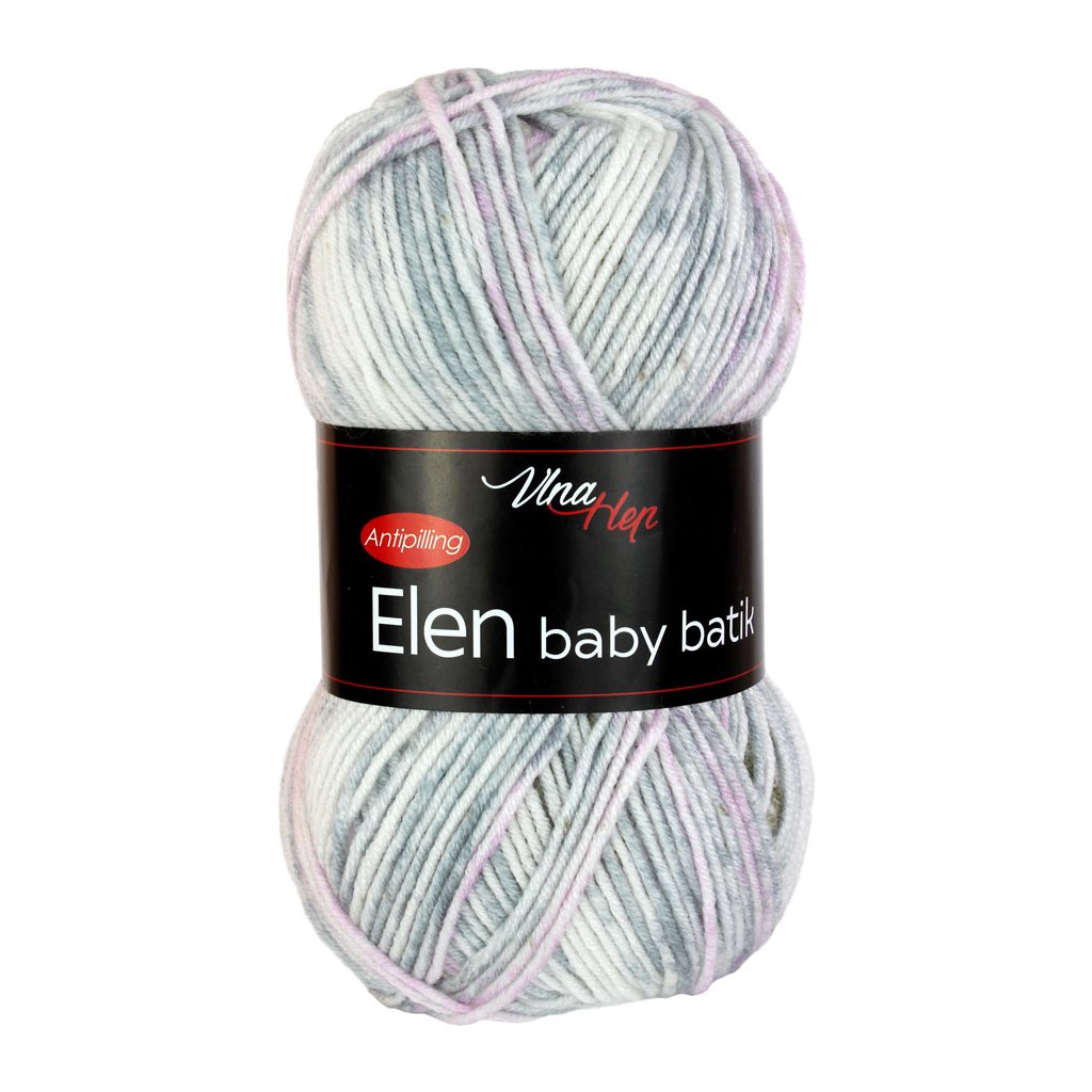 Stejně jako její jednobarevná sestra je i Elen baby batik velmi univerzální akrylová příze, kterou využijete na čepice, nákrčníky, rukavice, svetry, vesty, ponča, šaty, sukně.