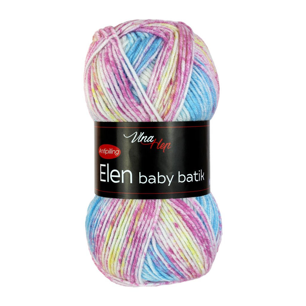 Stejně jako její jednobarevná sestra je i Elen baby batik velmi univerzální akrylová příze, kterou využijete na čepice, nákrčníky, rukavice, svetry, vesty, ponča, šaty, sukně.