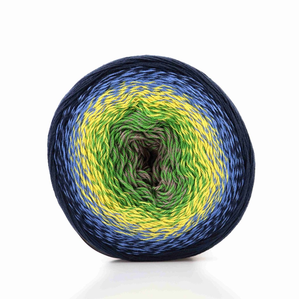 příze Flowers 250 světle hnědá, zelená, žlutá, modrá.