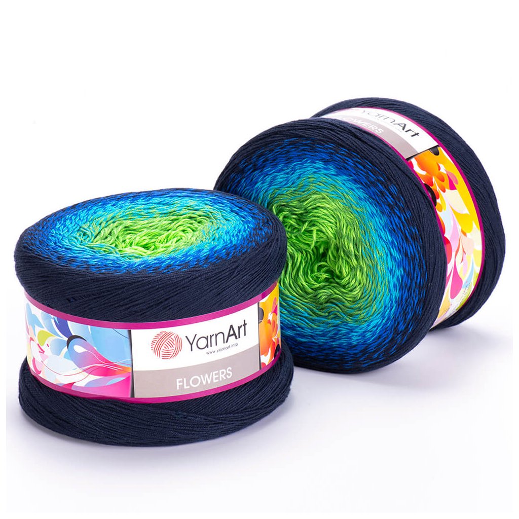 příze Flowers 300 jasná zelená, tyrkys, modrá, temně modrá