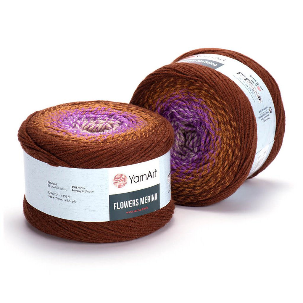 Flowers Merino je středně silná duhová akrylová příze s 25 % příměsí merino vlny. Praktickou stránku akrylu skvěle doplňuje hřejivost merina.