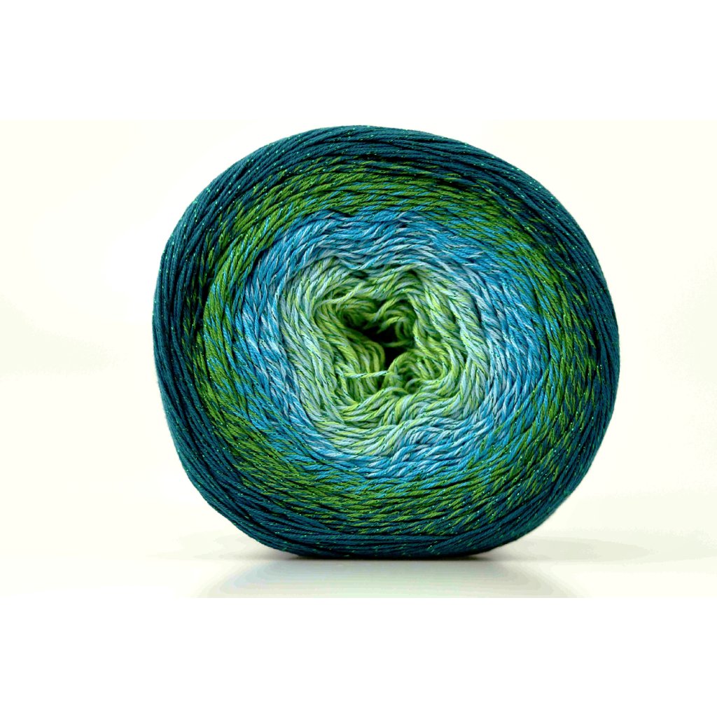 Příze Flowers Moonlight 3256 hráškově zelená, tyrkysová, lesní zelená, sváteční zelená.