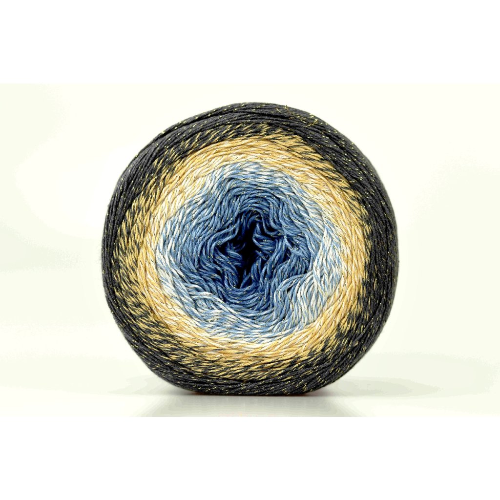 Příze Flowers Moonlight 3287 tmavě modrá, modrá, béžová, šedá.