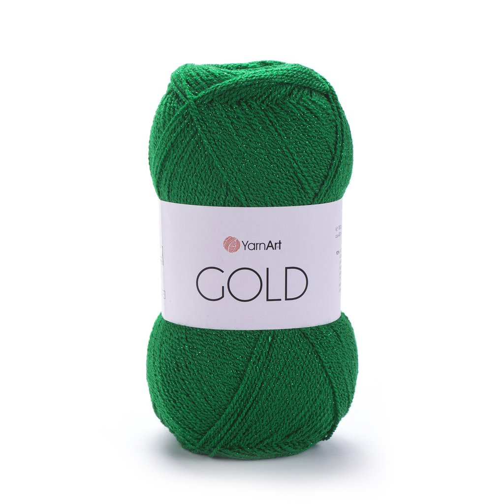 Příze gold je efektní tenčí příze s lurexovým vláknem (stříbrným, zlatým, barevným), ze které vyrobíte krásné úplety, např. svetry, vesty, plédy, ale také čepice, šálky, tunely, popř. je tato příze využívána k oživení jednobarevných úpletů na lemy, kapsy, kytičky apod. Prozáří i pohovky, pokud si z ní vyrobíte třeba povlaky na polštářky.