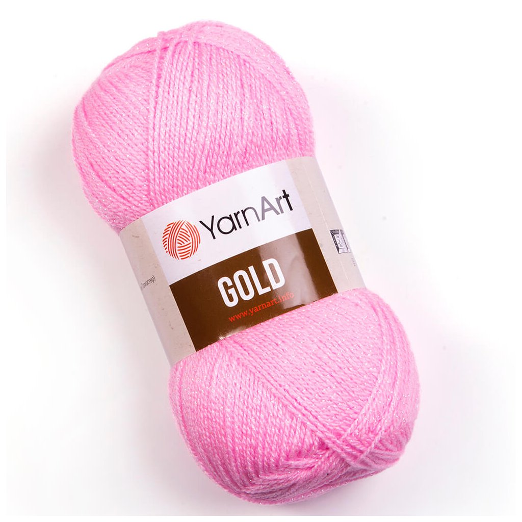 Příze gold je efektní tenčí příze s lurexovým vláknem (stříbrným, zlatým, barevným), ze které vyrobíte krásné úplety, např. svetry, vesty, plédy, ale také čepice, šálky, tunely, popř. je tato příze využívána k oživení jednobarevných úpletů na lemy, kapsy, kytičky apod. Prozáří i pohovky, pokud si z ní vyrobíte třeba povlaky na polštářky.