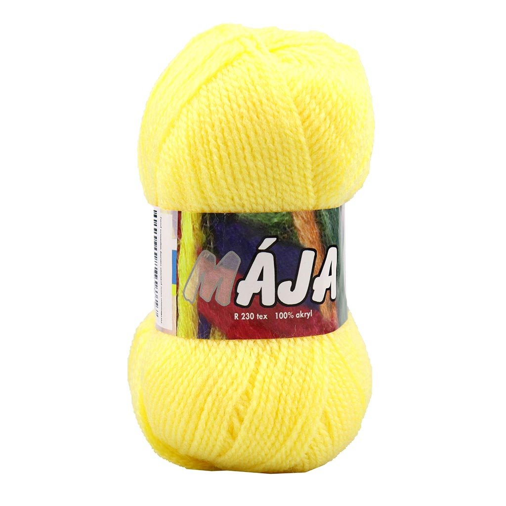 Příze Mája je 100 % akrylová příze. Má velmi universální použití. Upletete si nebo uháčkujete různé čepice, čelenky, šály, nákrčníky, vesty, svetříky, ponča, plédy, sukně, šaty a to nejen pro dospělé, ale také pro děti.