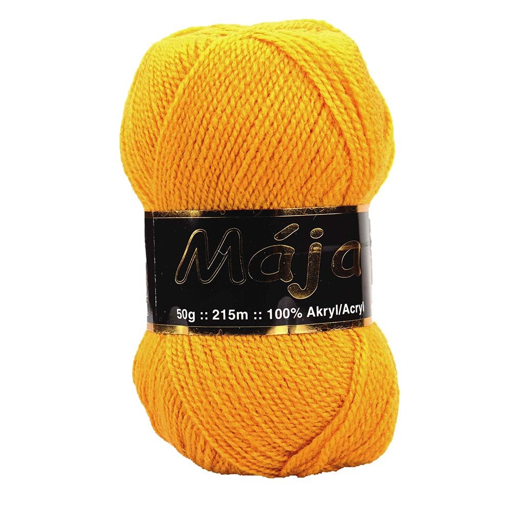 Příze Mája je 100 % akrylová příze. Má velmi universální použití. Upletete si nebo uháčkujete různé čepice, čelenky, šály, nákrčníky, vesty, svetříky, ponča, plédy, sukně, šaty a to nejen pro dospělé, ale také pro děti.