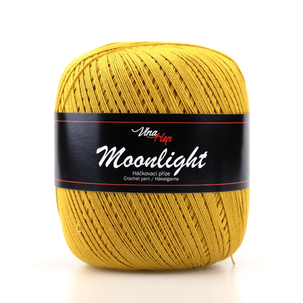 Příze Moonlight je slabá háčkovací příze ve větších 100 g klubíčkách, skvělá pro výrobu deček, krajek a také vánočních a velikonočních ozdob, andílků, panenek, ale využijete i na lehké letní topy a halenky.