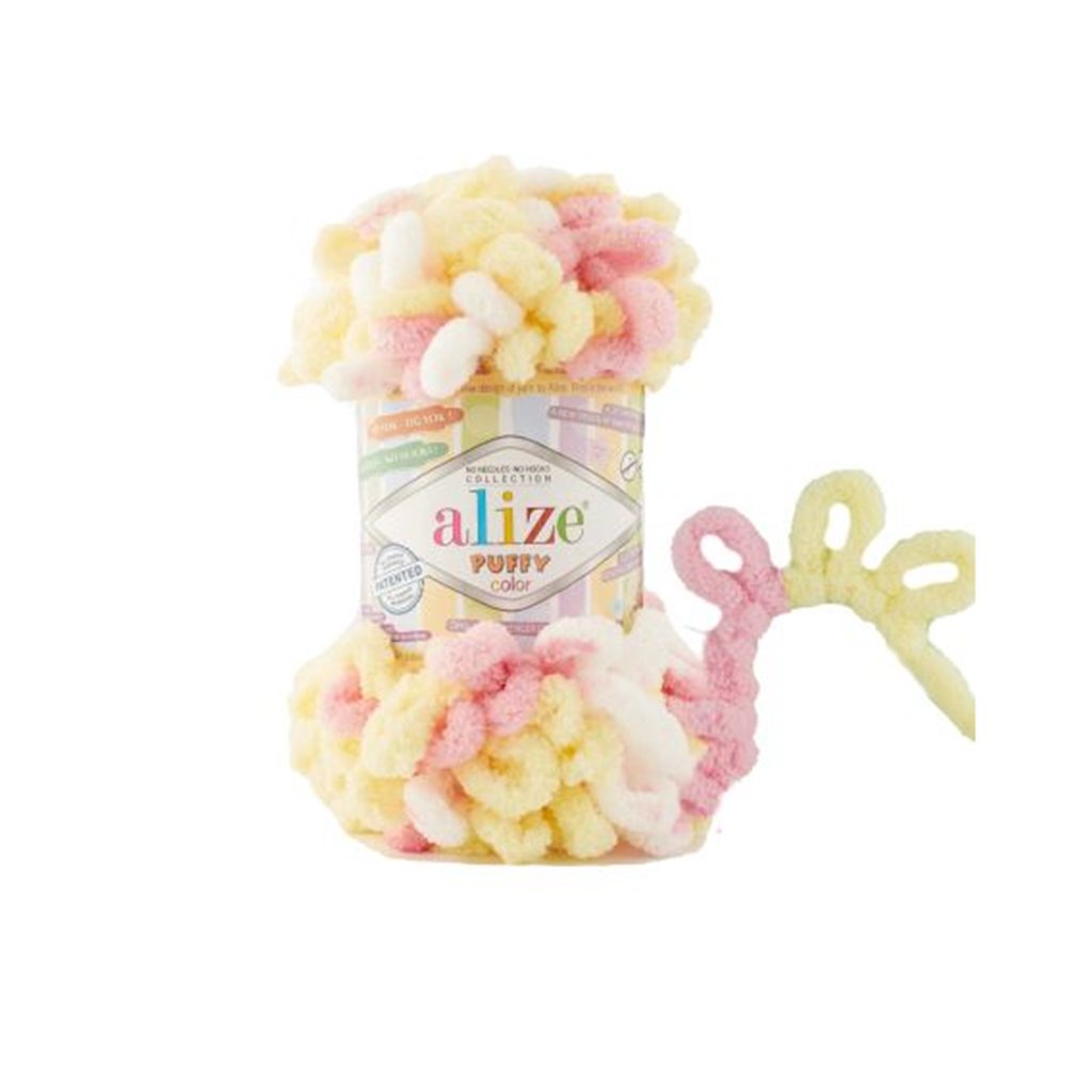 příze Puffy color 6369 bílá, žlutá, růžová
