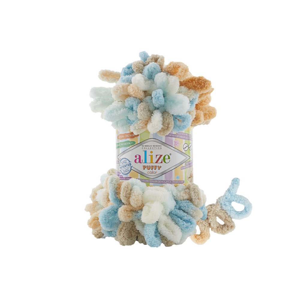 příze Puffy color 6530 krémová, mintová, modrá, hnědá.