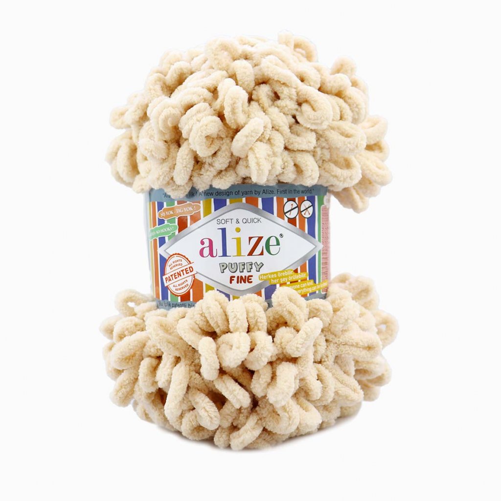 Očka i síla příze Puffy Fine jsou menší než u klasické Puffy.