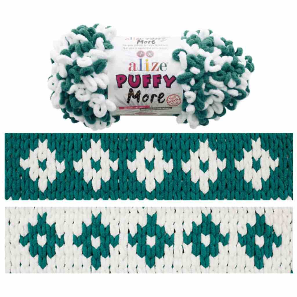 příze Puffy More 6570 lesní zelená a bílá.
