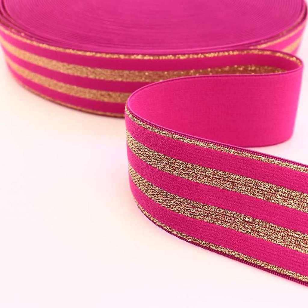 Pruženka se zlatými proužky 4 cm fuchsiová