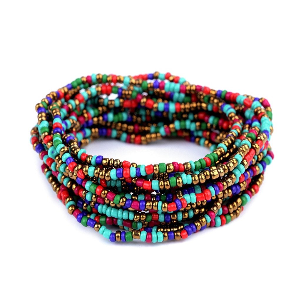 Pružné rokajlové náramky v sadě 12 ks můžete nosit všechny najednou nebo jednotlivě.