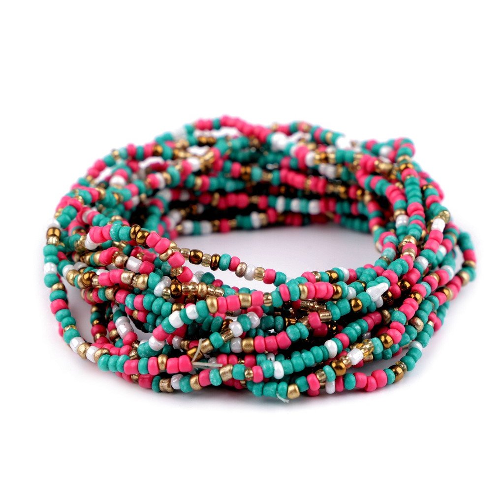 Pružné náramky z rokajlu sada 12 ks růžová tyrkys.