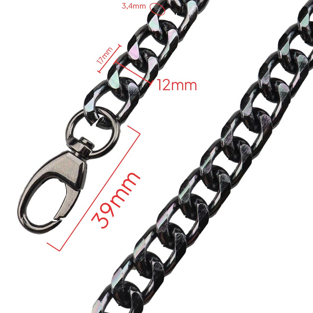 Řetízek na kabelku s karabinou 120 cm, 12 mm černý nikl