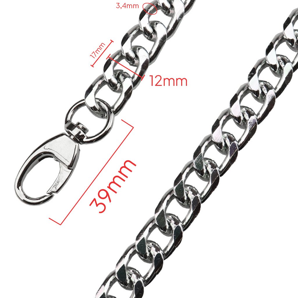 Řetízek na kabelku s karabinou 120 cm, 12 mm nikl