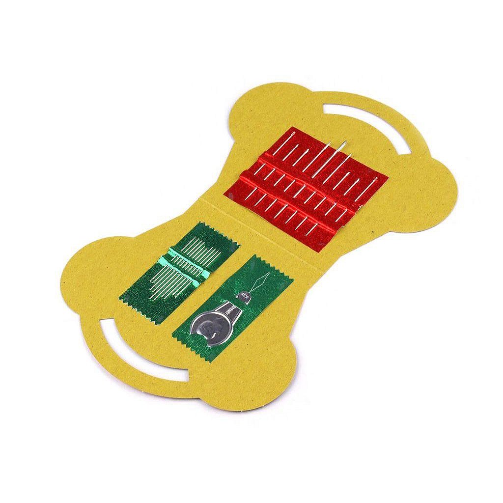 Kovové jehly jsou zapíchnuty v praktickém papírovém balení.