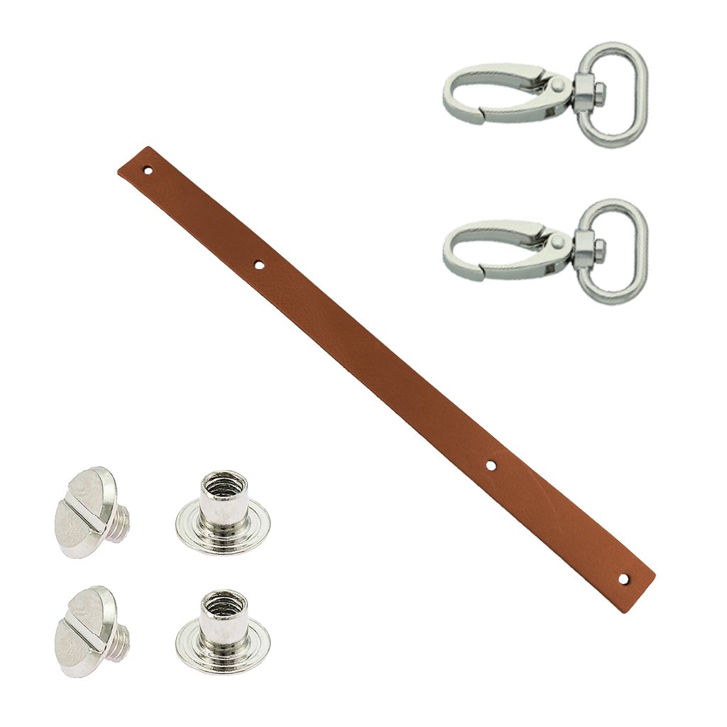 Sada kožený popruh 22 cm š. 2 cm hnědý s karabinou nikl