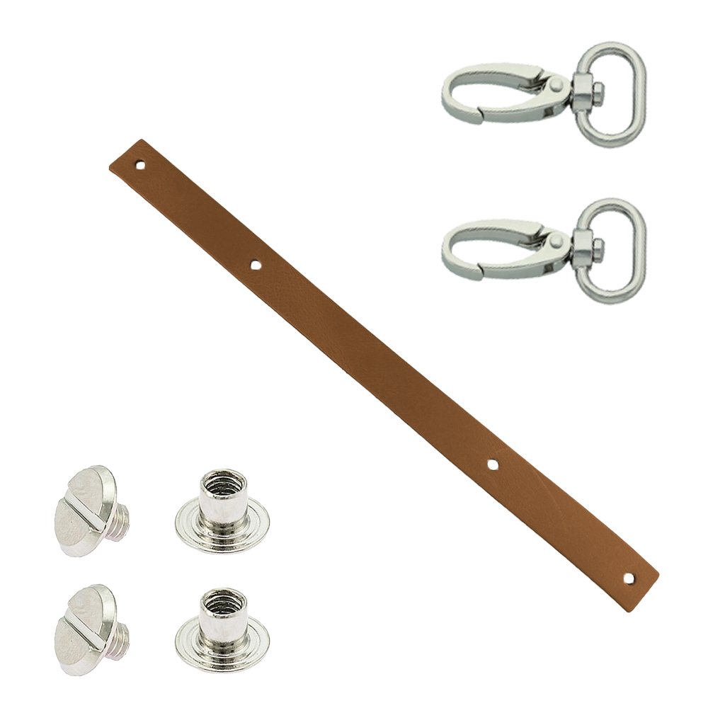 Sada kožený popruh 22 cm š. 2 cm tmavě hnědý s karabinou nikl