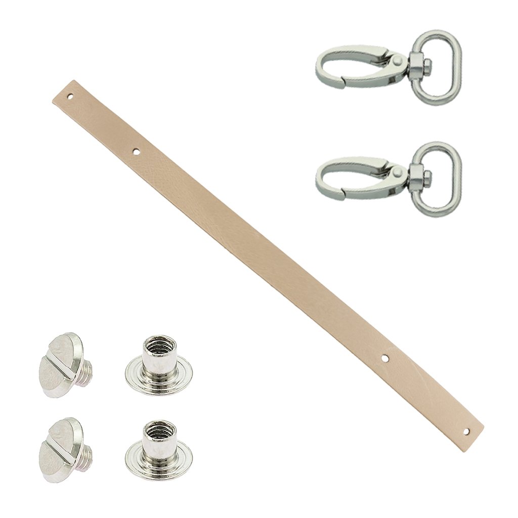 Sada kožený popruh 32 cm š. 2 cm krémový s karabinou nikl