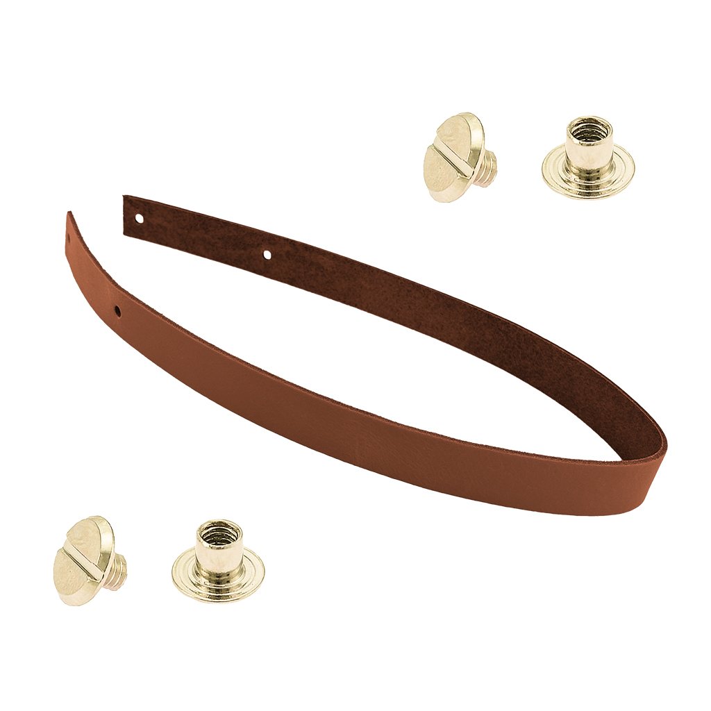 Sada kožený popruh 58 cm š. 2,5 cm hnědý s nýtkem zlatý